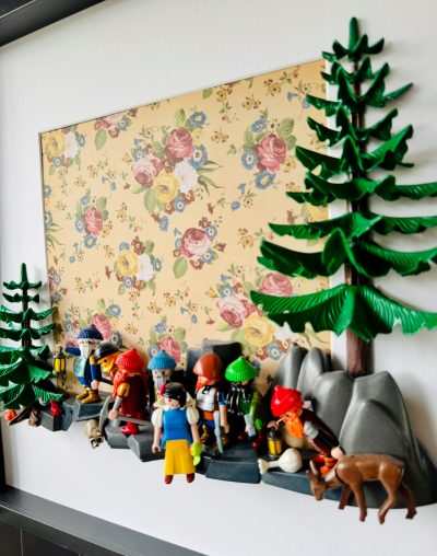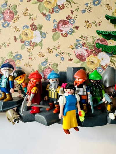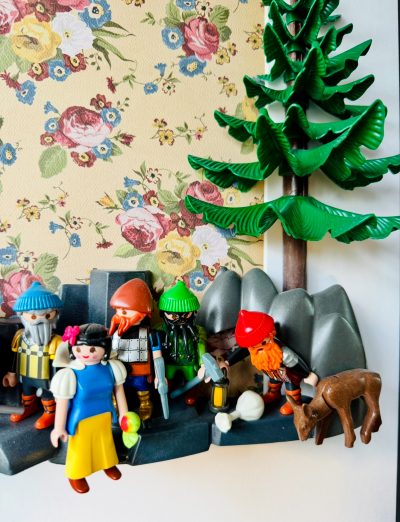 Dans ce tableau vivant, j’ai souhaité capturer la magie intemporelle du conte de fées « Blanche-Neige et les 7 nains » et de leur célèbre « siffler travaillant » à travers l’univers coloré et ludique de nos figurines Préférées.