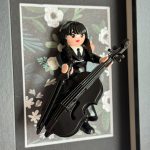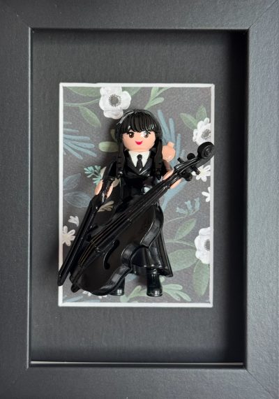 Dimensions de l’œuvre : 10 x 15 cm, avec une profondeur de 3 cm. L’encadrement en panneau de fibres de bois noir ajoute une touche d’élégance et peut être personnalisé selon vos envies. Que vous choisissiez de l’exposer sur une table ou de l’accrocher au mur, cette pièce apportera une note décalée à votre décoration.