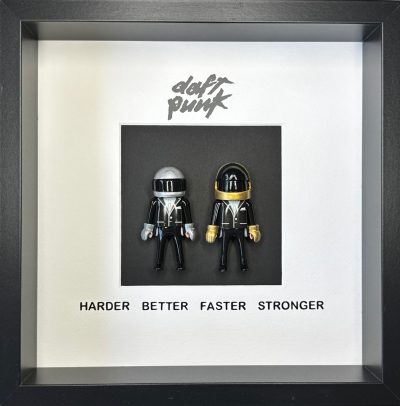 Dimensions de l’œuvre : 25 x 25cm, avec une profondeur de 3 cm. L’encadrement en panneau de fibres de bois noir ajoute une touche d’élégance et peut être personnalisé selon vos envies. Que vous choisissiez de l’exposer sur une table ou de l’accrocher au mur, cette pièce apportera une note décalée à votre décoration.
