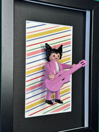 Dimensions de l’œuvre : 13 x 18 cm, avec une profondeur de 3 cm. L’encadrement en panneau de fibres de bois noir ajoute une touche d’élégance et peut être personnalisé selon vos envies. Que vous choisissiez de l’exposer sur une table ou de l’accrocher au mur, cette pièce apportera une note décalée à votre décoration.