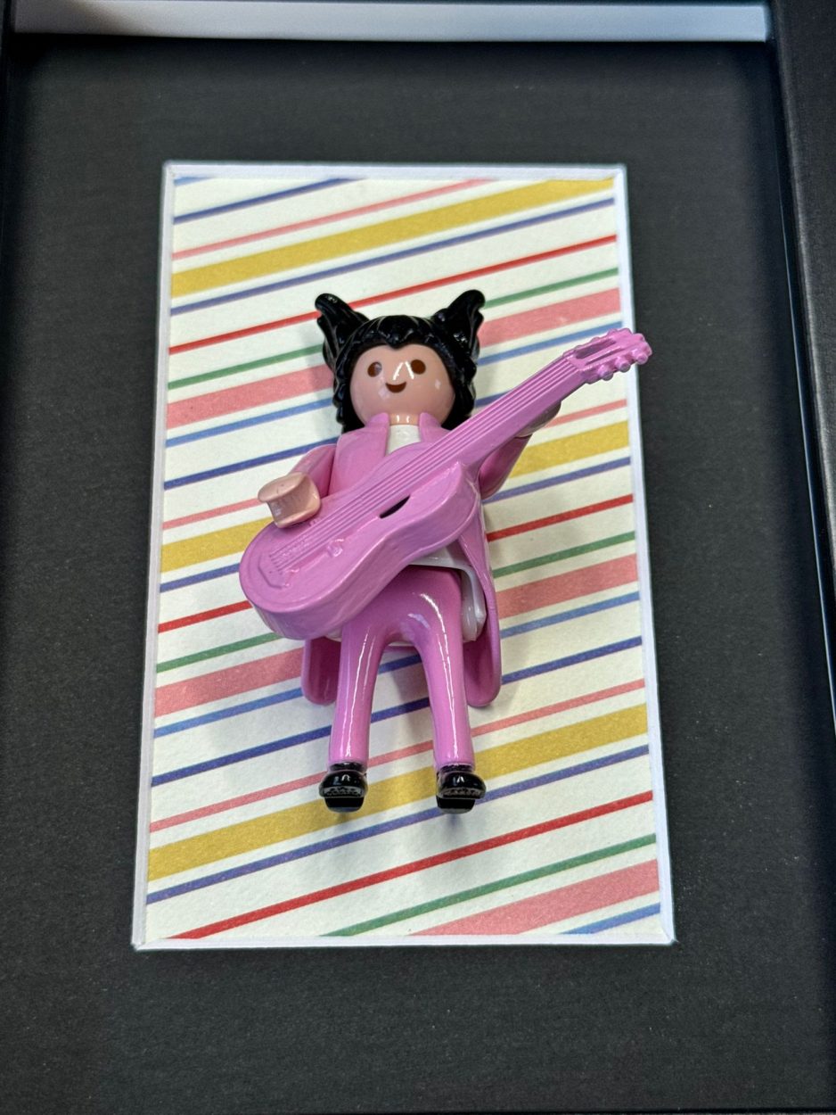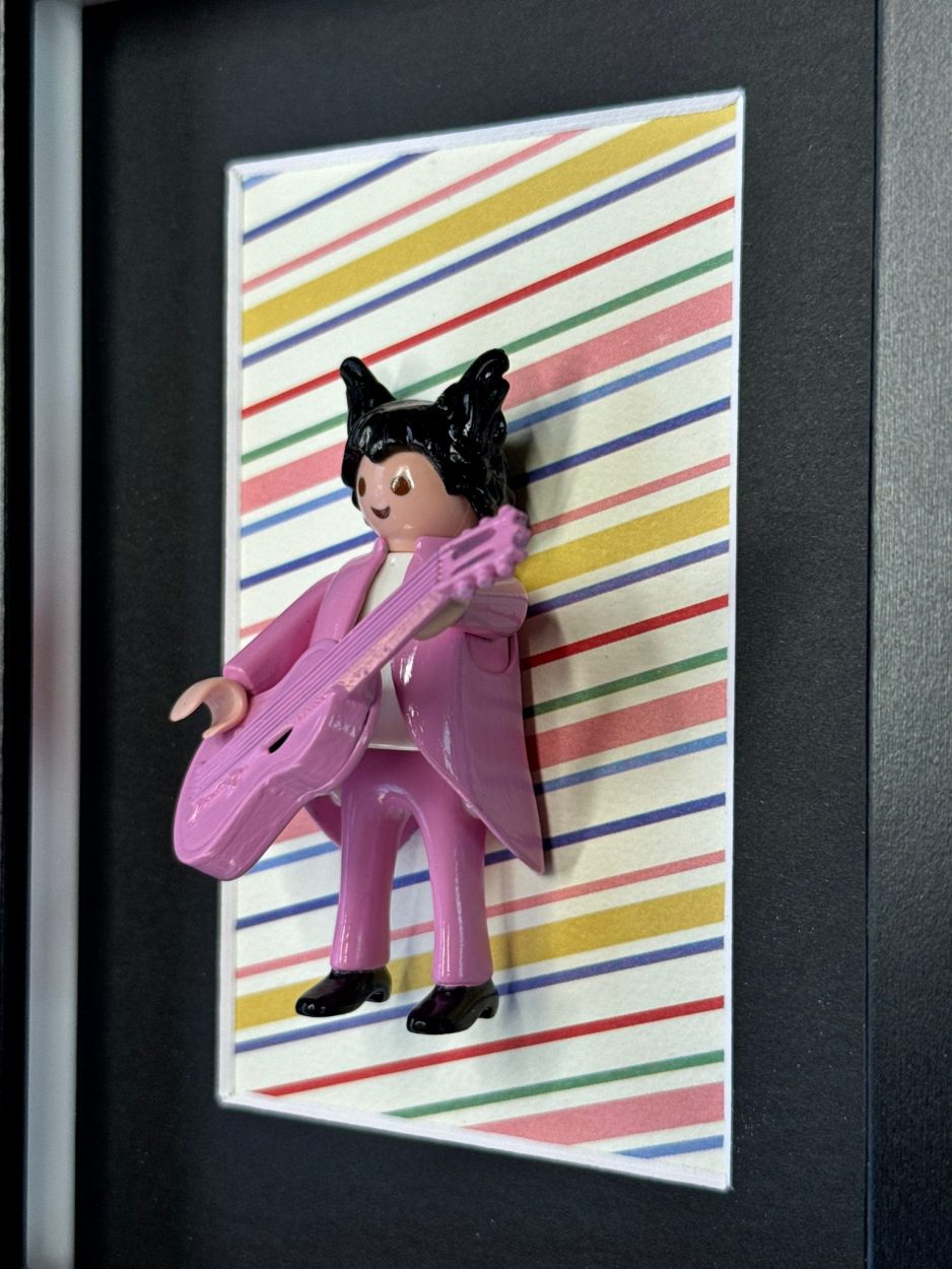 Dimensions de l’œuvre : 13 x 18 cm, avec une profondeur de 3 cm. L’encadrement en panneau de fibres de bois noir ajoute une touche d’élégance et peut être personnalisé selon vos envies. Que vous choisissiez de l’exposer sur une table ou de l’accrocher au mur, cette pièce apportera une note décalée à votre décoration.