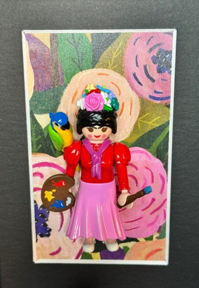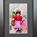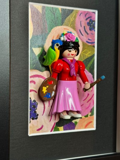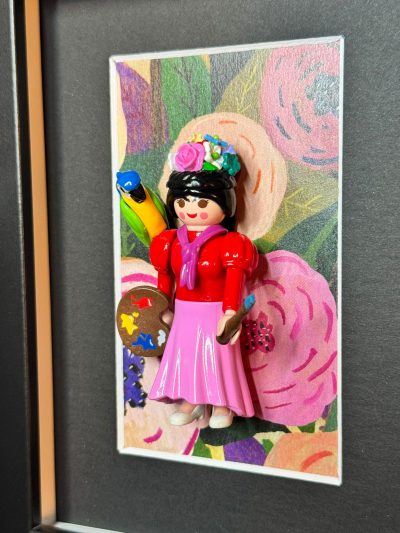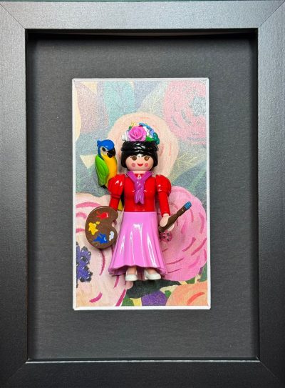 Dimensions de l’œuvre : 13 x 18 cm, avec une profondeur de 3 cm. L’encadrement en panneau de fibres de bois noir ajoute une touche d’élégance et peut être personnalisé selon vos envies. Que vous choisissiez de l’exposer sur une table ou de l’accrocher au mur, cette pièce apportera une note décalée à votre décoration.