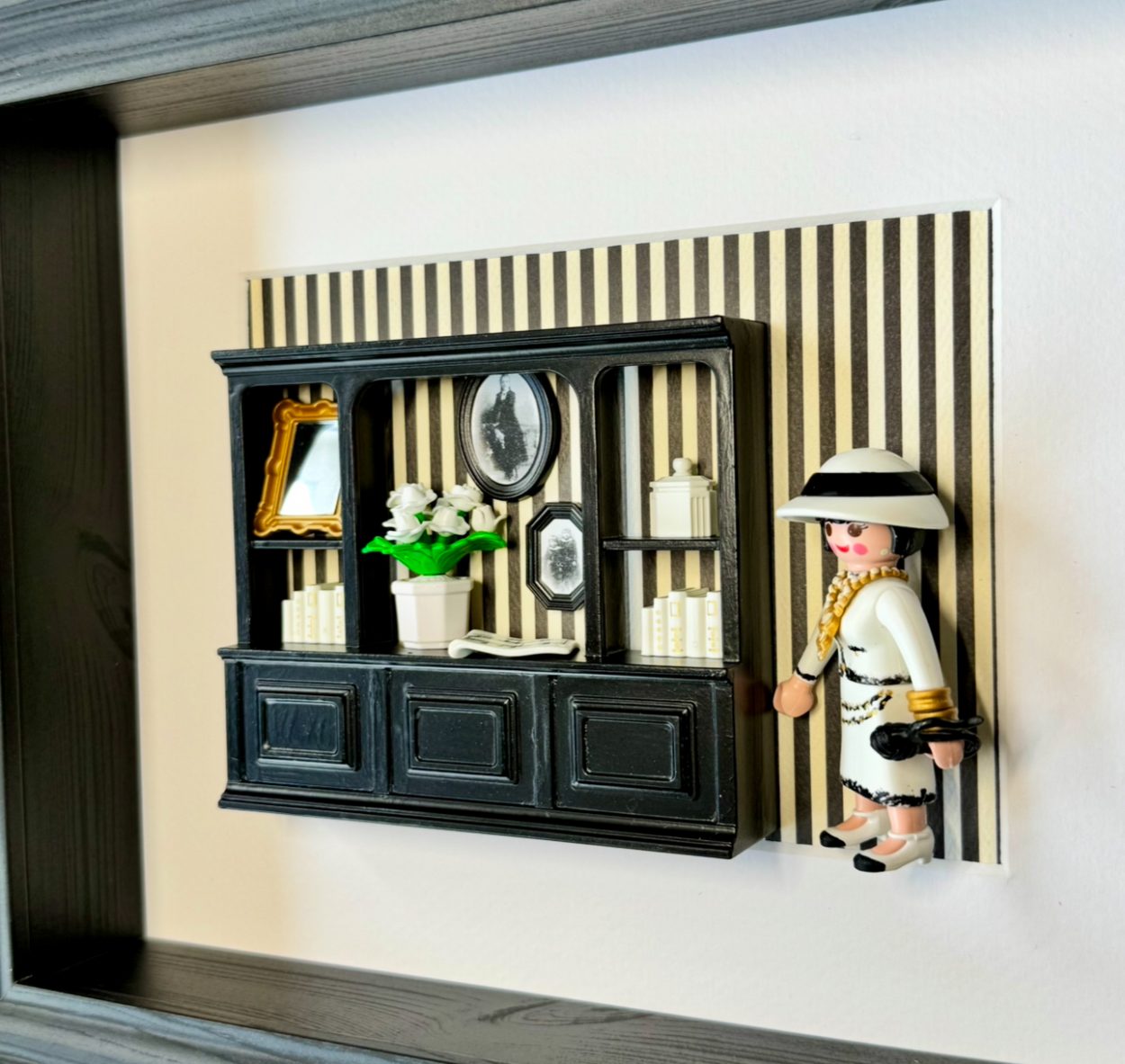 Comme dans chacune des créations proposée par Mlle Louise, chaque personnage ou détail est exclusivement créé à partir d’éléments de la marque de figurine qui a bercée notre enfance.
